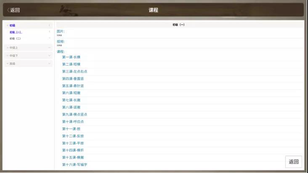 (3)示例:選擇課程長橫,學習長橫課程內容。例字練習中可直接播放筆順動畫和書寫示范視頻。