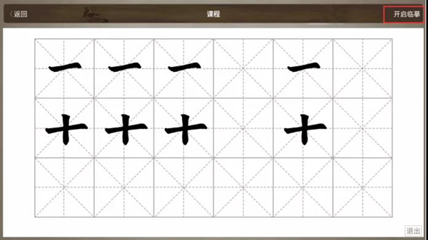 (4)示例:練習本課例字,點擊右上方開啟臨摹,屏幕觸控鎖定,亮度自動調亮,鋪上宣紙即可臨摹。