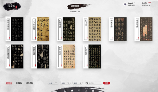 翰墨派投射式云書法教室從軟件和硬件環境上全面響應綱要要求,提供書法教學所需要的全部碑帖、字庫、課件等教學資源,并提供功能豐富的筆畫、單字、章法教學工具,以及從字帖編輯器到桌面臨摹屏學生書法儀、教學互動控制系統、點評及示范用教師書法教學儀等一系列軟硬件環境。
